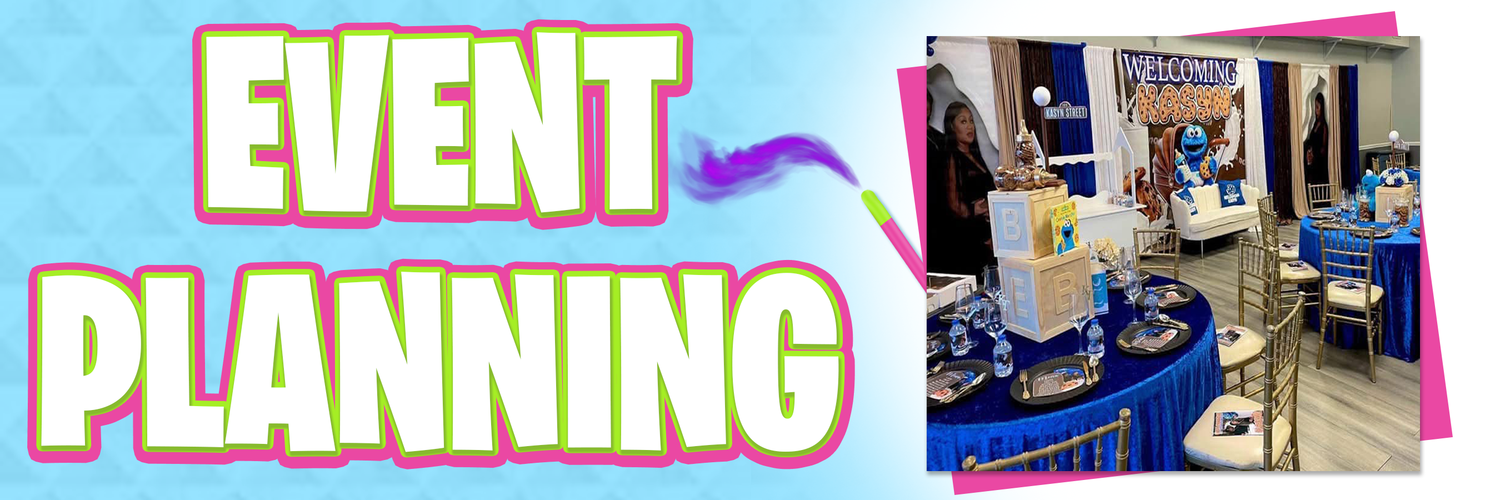 (Up to 50 guest, (2) Balloon columns or (1) balloon garland, full themed event set up, head table for guest of honor, welcome sign, 1 backdrop)